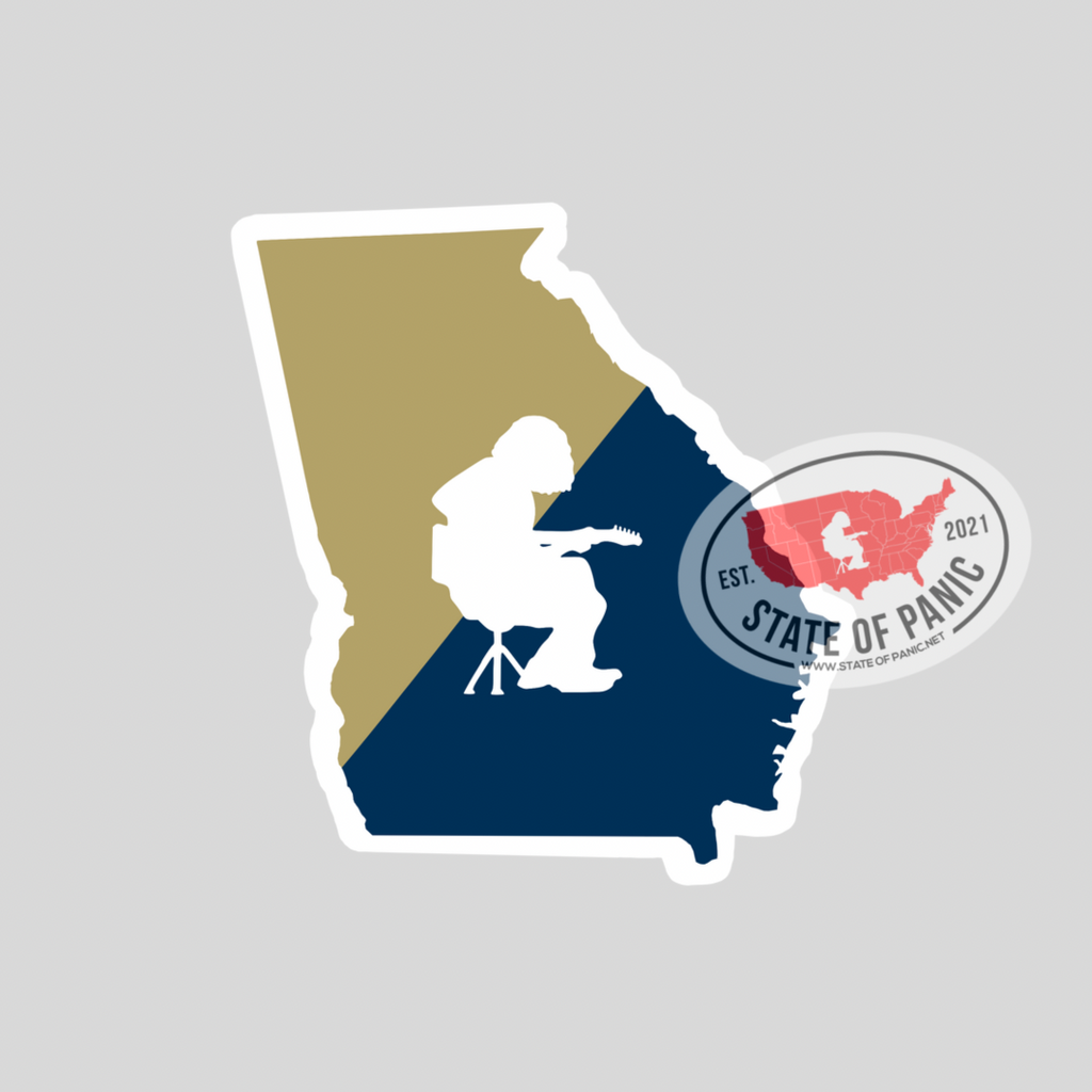 State of Panic - Tech Gold & Navy Georgia Mikey Sticker
