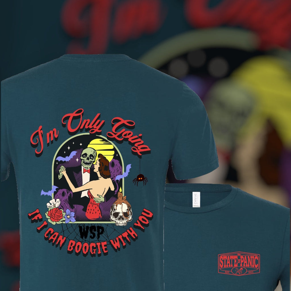 Widespread Panic-inspired, Halloween, Walkin’, State of Panic T-Shirt. This shirt comes printed on a Bella Canvas Jersey Tee. These are 100% Airlume combed and ring-spun cotton, it is sure to become a favorite. This is currently only offered in the Deep Teal Color. Stay tuned for more to come in this evolving series!
