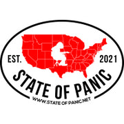 *** All State of Panic Stickers come cut to shape, are printed on high quality outdoor grade vinyl, and are laminated. Laminate adds scratch protection as well as UV protection, which extends the life of the sticker. The average outdoor lifespan is about 4-5 years in all weather conditions. Our stickers are waterproof, weatherproof, and can Even be run through the dishwasher (top rack, air dry).